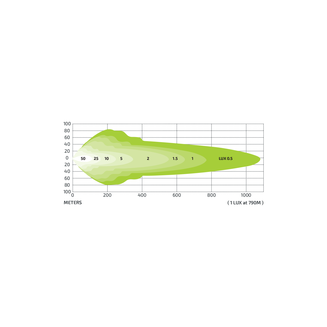 The benefit of the NX832’s combo beam is that it offers both very wide spread immediately in front of the vehicle, from fence to fence, as well as a strong punch down the middle of the road to improve road illumination. With an astonishing 11,973 raw lumens and a beam that reaches 1 Lux at 790m, this is truly the perfect beam for Off-Road driving or On-Highway driving.